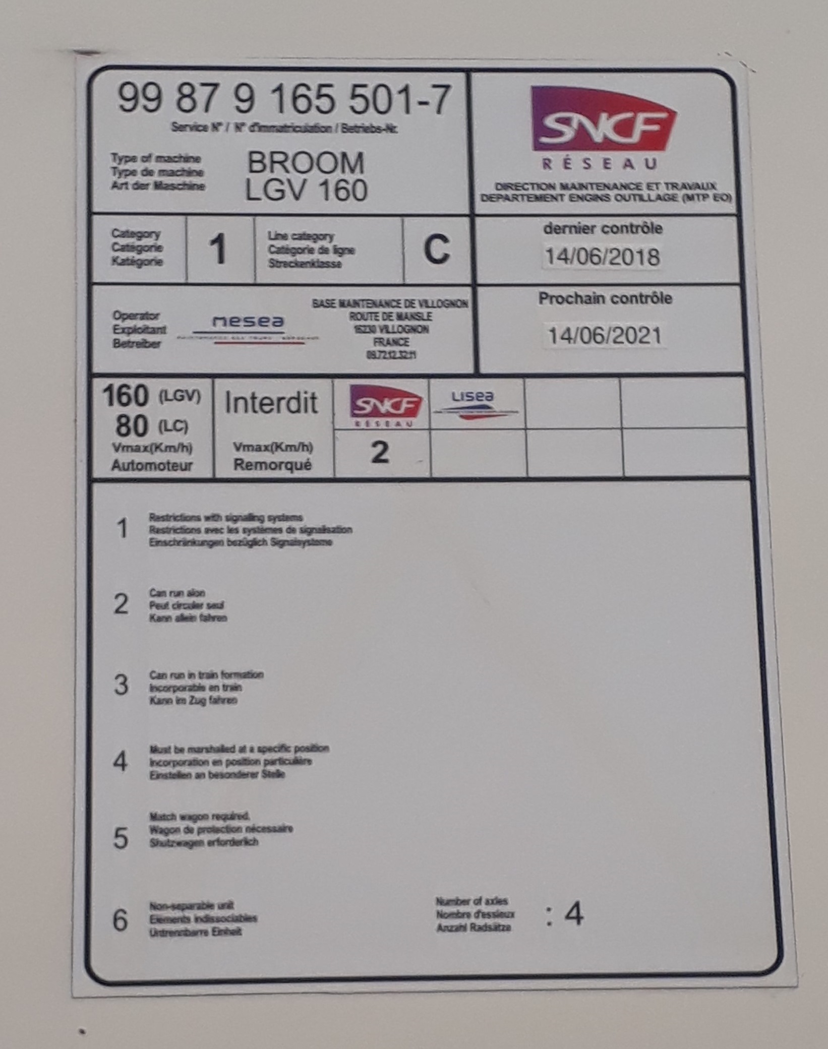 Re: Draisine BROOM LGV 160 - 99 87 9 165 501-7 - MESEA
