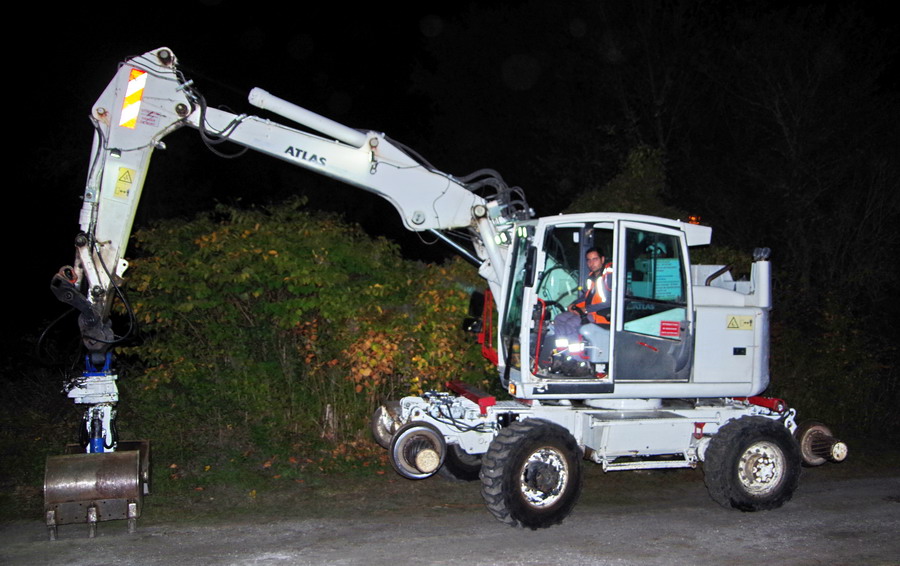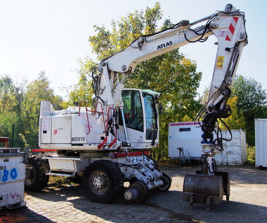de la gare de La Fère (02) avec la Pelle Rail route Atlas 1404 ZW n°241Z301844 - Eiffage