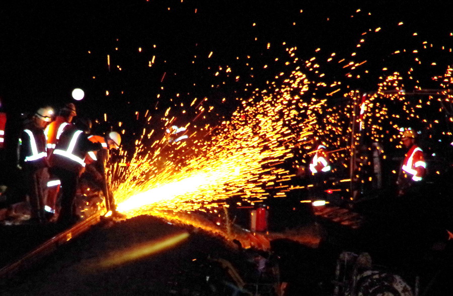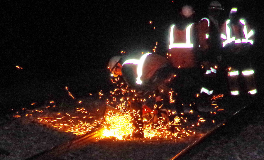 Préparation du chantier dans la nuit du 10 au 11 novembre 2018 sur la base de travaux de la gare de La Fère