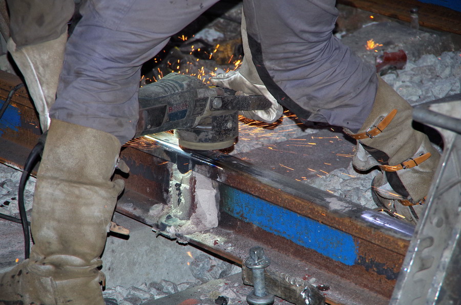 isolant électrique) avec le passage d'une décalamineuse de rail avec possibilité de régler la pression exercée par la roue abrasive