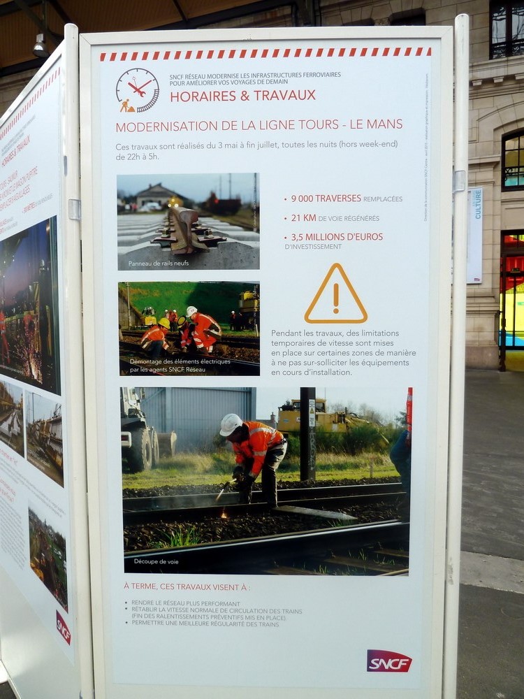 Voici des panneaux en gare de Tours pour les travaux sur la zone Tours en 2015