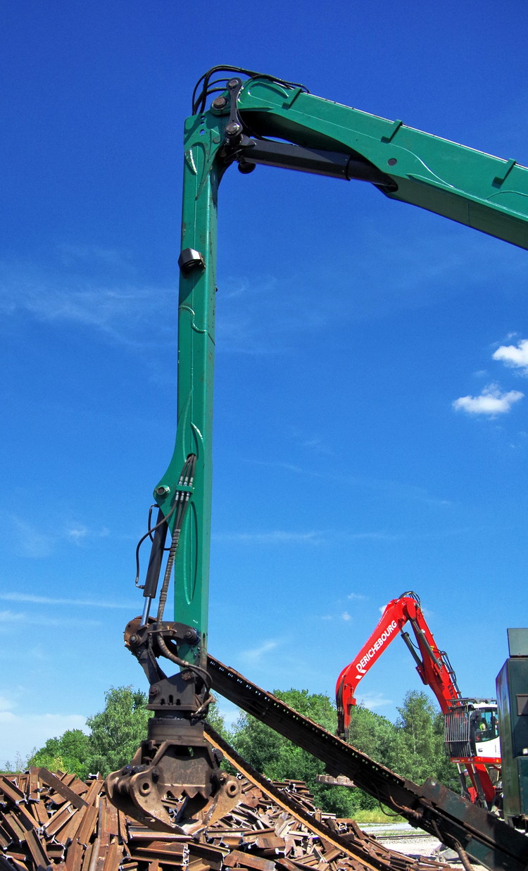 Nous exploitons le 4ème break depuis 2012. Grâce à l'arrivée des brise-roches que nous avons conçus, le traitement des rails a radicalement changé. Auparavant, les rails étaient découpés pièce par pièce avec une torche de coupe. Cependant, cela prend beaucoup de temps et nécessite beaucoup de travail. En outre, un tonnage élevé n'est pas atteint ici. D'un autre côté, le brise-roche fait beaucoup de tonnage en peu de temps et demande beaucoup moins de travail. Le brise-roche traite les voies ferrées jusqu'à 18 mètres (provenant d'une section ferroviaire).