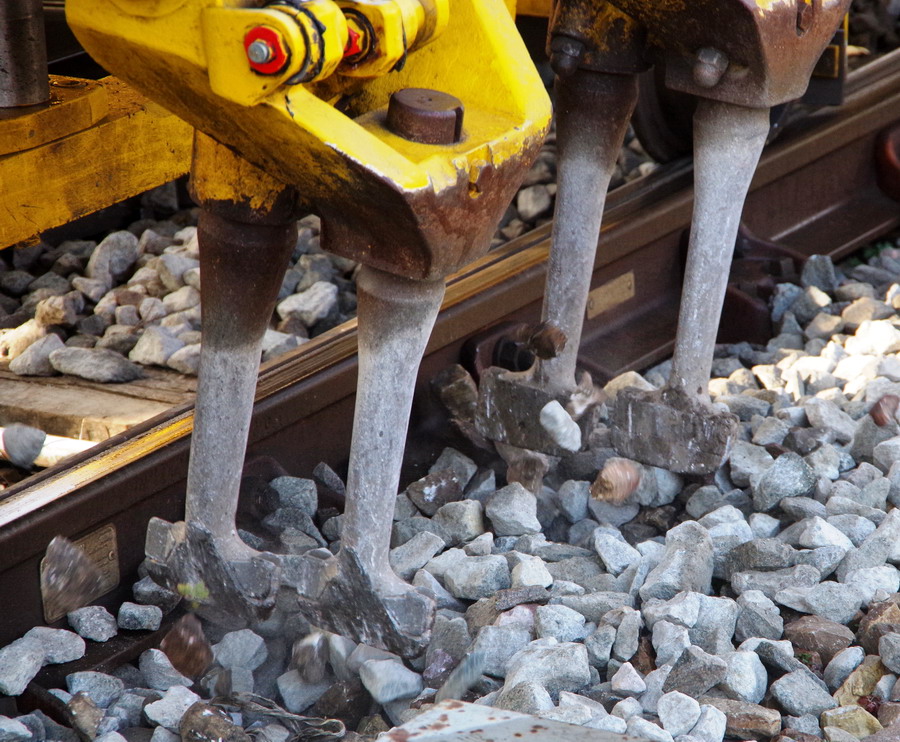 travail avec une fourche à ballast (Travaux de ballastage, dégarnissage, etc…)