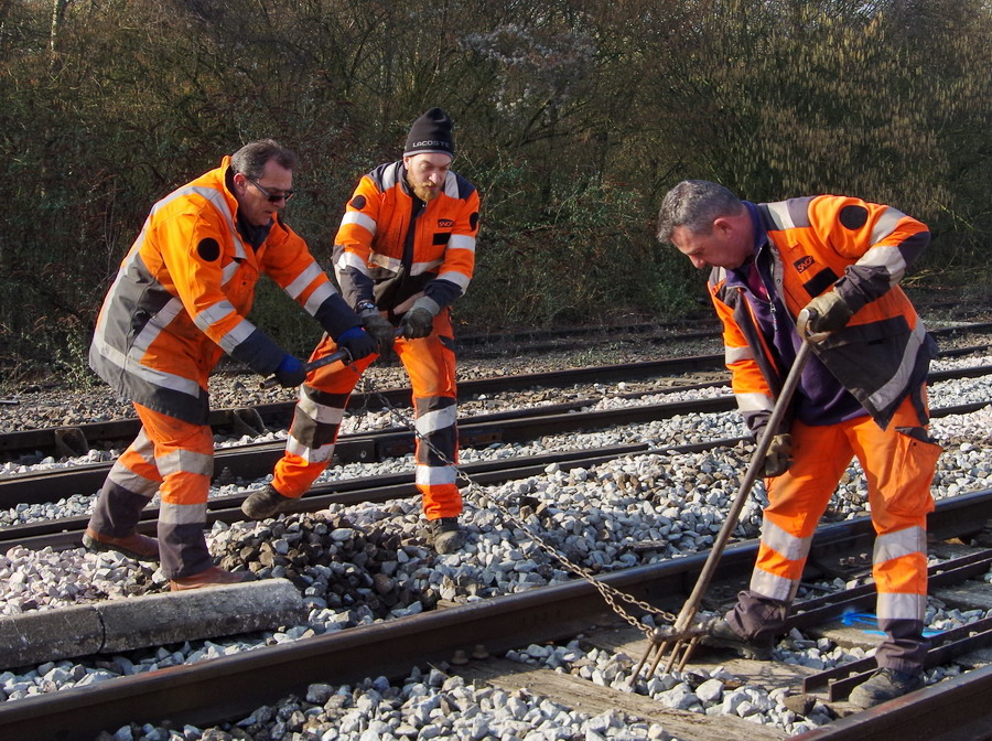 travail avec une fourche à ballast gare de Ham le 22-02-2019