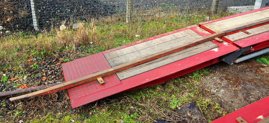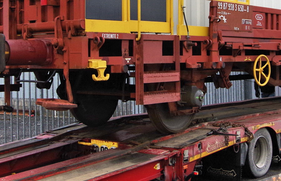 le camion et la remorque spécial transport ferroviaire en gare d'Origny-Sainte-Benoîte le 09 janvier 2019