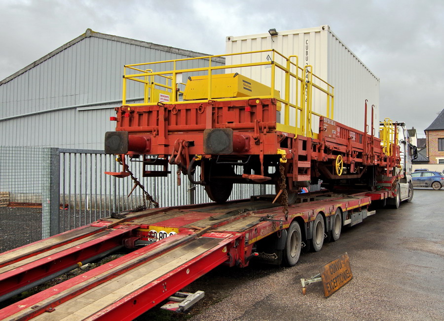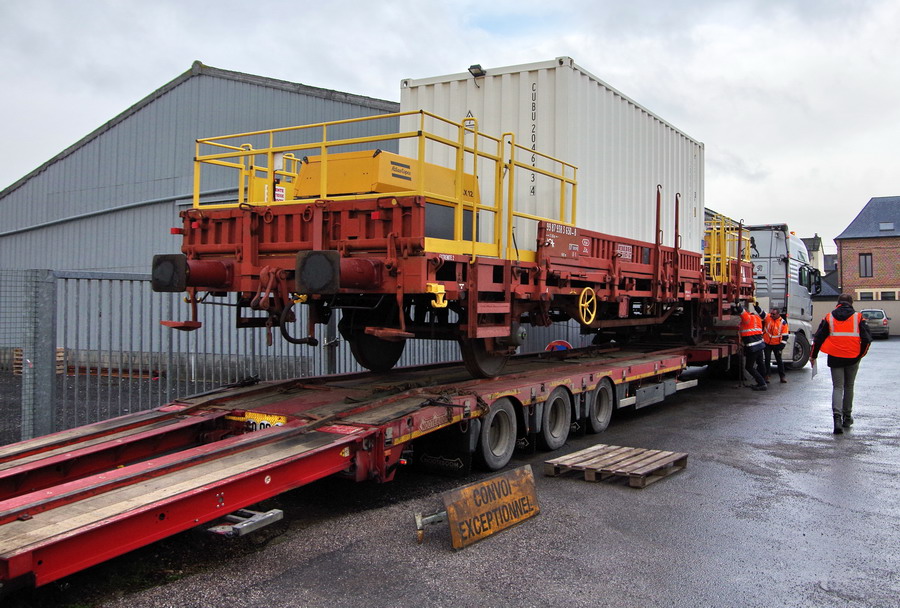 arrivée de St Nazaire par camion du wagon pour la gare d'Origny-Sainte-Benoîte le 09 janvier 2019