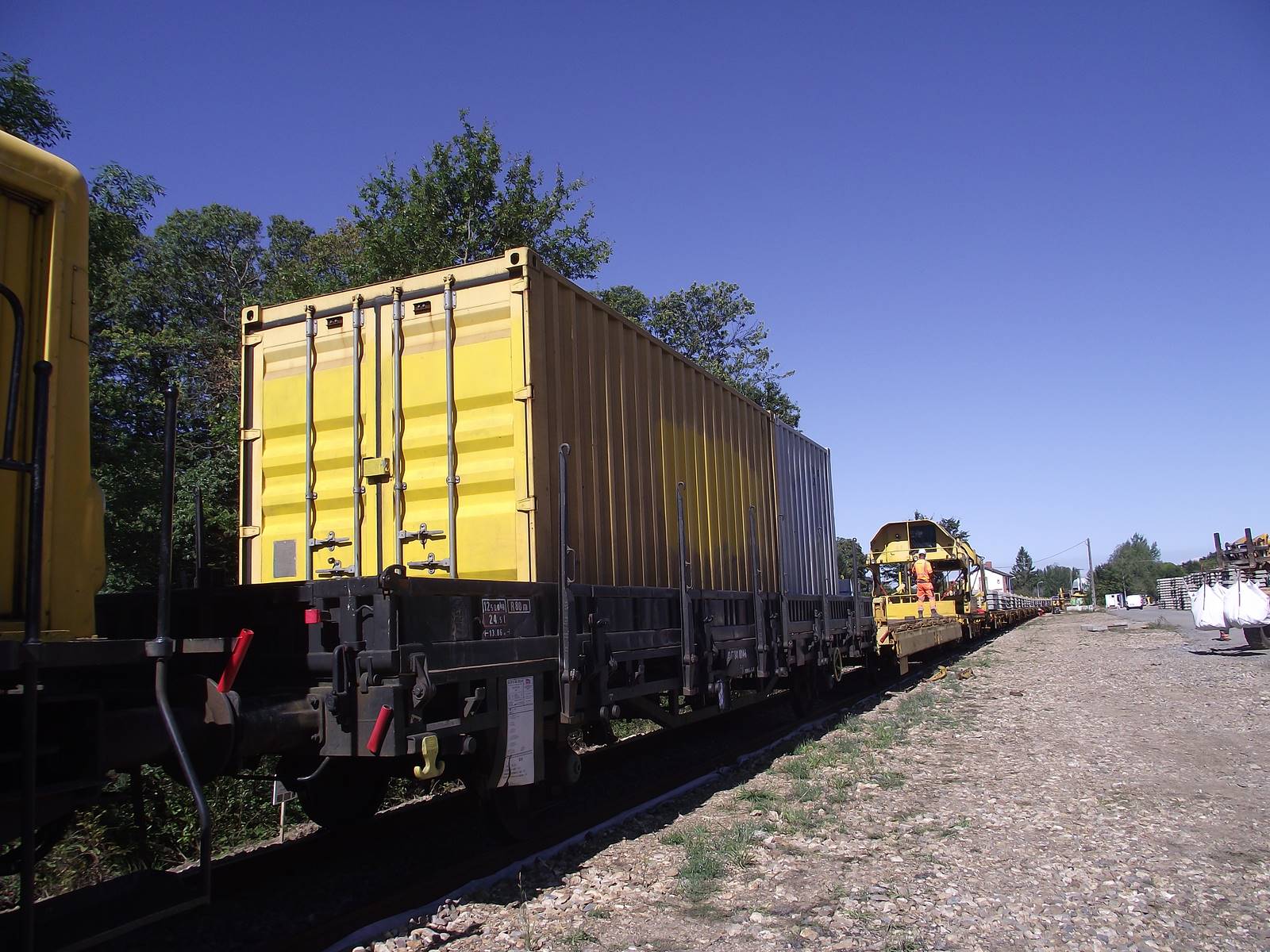 le TCM60 commence le chantier aujourd'hui, hier il était en préparation,(déchargement des containers et pièces de rechanges,chargement des traverses et même un petit coup de peinture) Daccord07