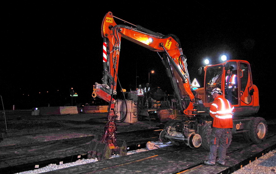 présence de la Pelle Rail Route D2R Z110 PRR n°WNCE0606LPAL00303 pour la requalification du PN 58 à Chauny (02)
