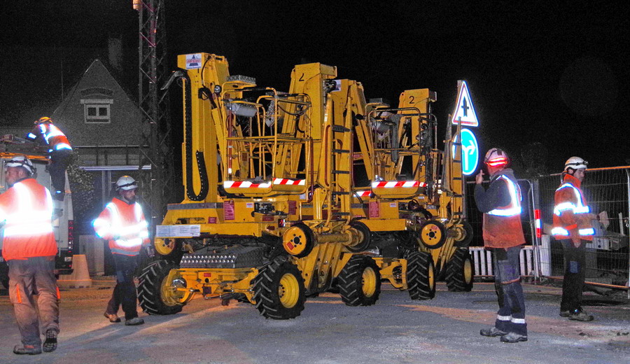 mise en place des LAMA T1 2N - LA 16-040 - HP Elec 4 + LAMA T1 2N - LA 14-017 - HP Elec 3 au PN 58 à Chauny nuit