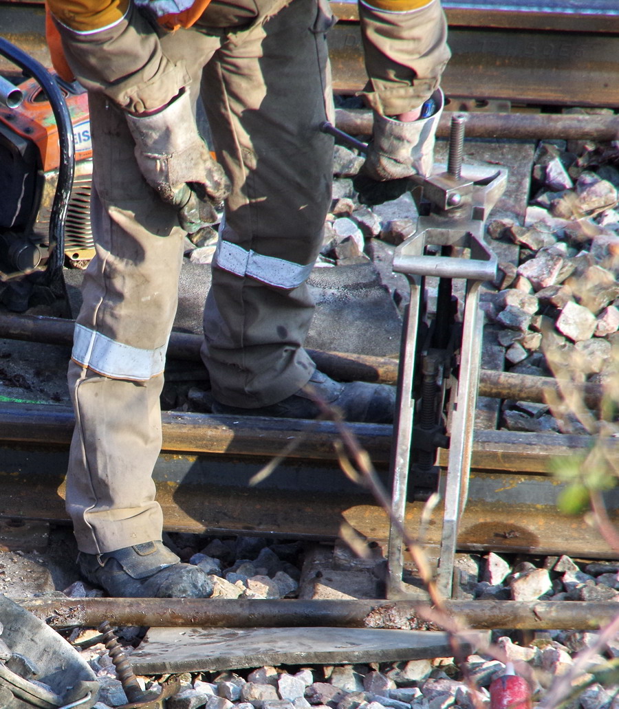 Mise en place des Chevalets de Réglage railtech de la série CR permettent d’aligner au mieux les rails avant la réalisation d’une soudure aluminothermique.