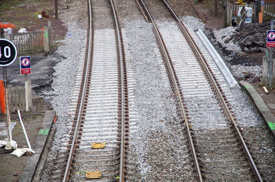 la voie 2 avec les LRS et un crocodile au PN n°35 de la gare de Hombleux le 13-03-2018