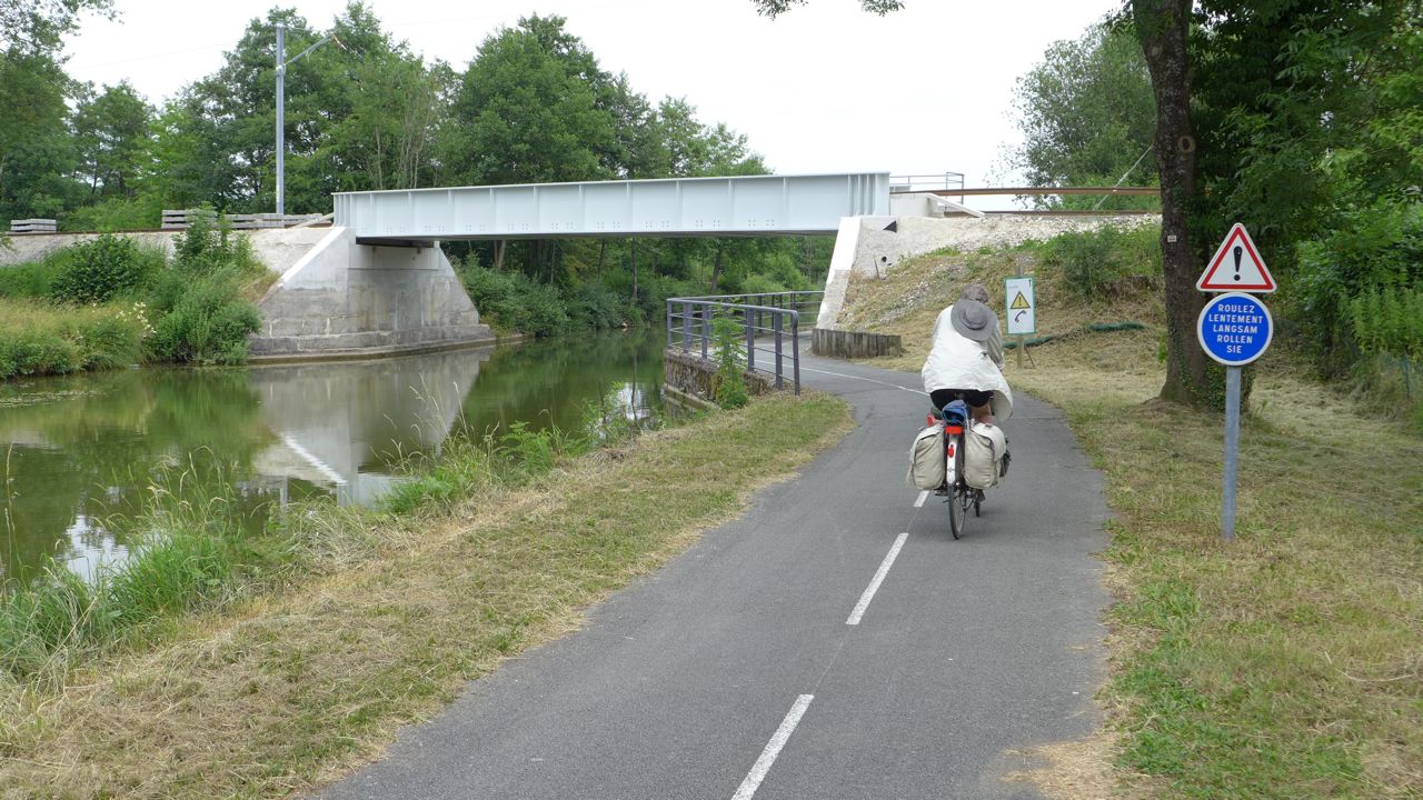 Et sur les images le vélo roule sur la piste cyclable aménagé sur l'ancien chemis d'halage (ou autrefois roulait des petites locomotives).