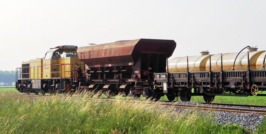 la G1206 BB 5001498 - 92 87 0 061 498-7 F-ETF sur le Train de pose P95 ETF 99 87 9 311 503-6 - ETF - "Addax PK 20 à Marcelcave le 04-06-2018