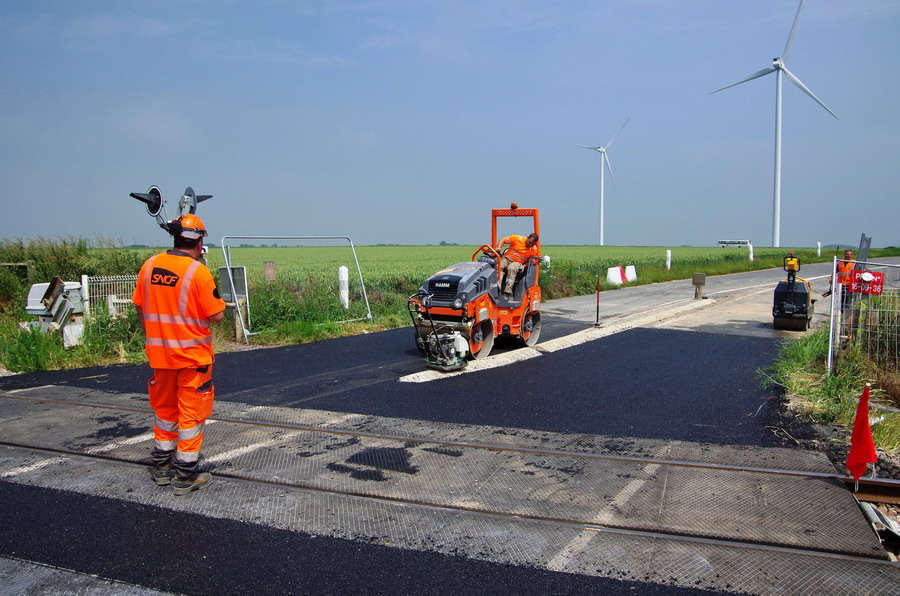 la suite au PN n°33 de Rouy-le-Petit (80) canton de Ham avec la finition et le goudronnage de l'accès du PN pour la réouverture