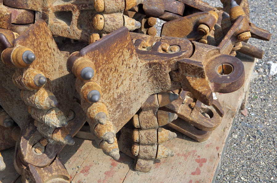 des pièces en métal pour la dégarnisseuse RM 95-800 n°4938 - 99 87 9 314 506-6 Meccoli sur la base de travaux de la gare de Laon le 08-06-2018