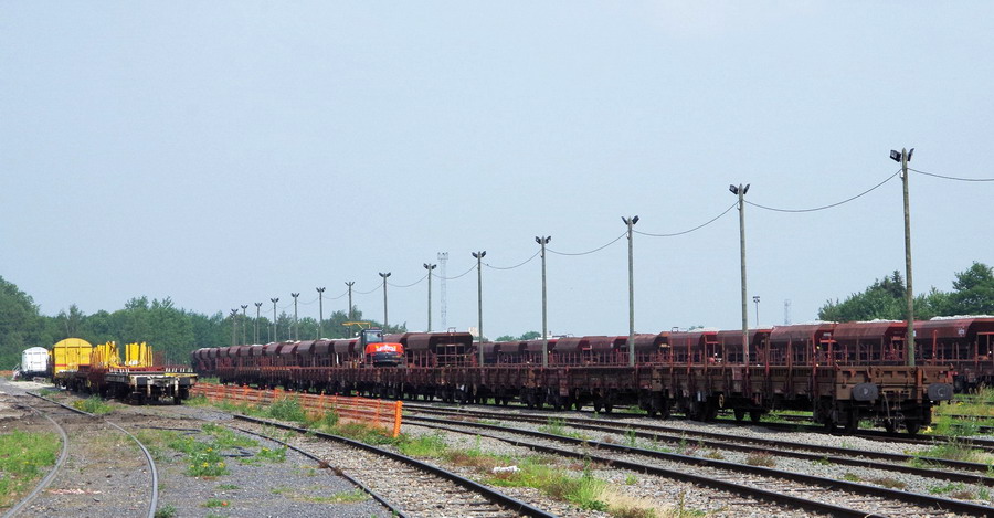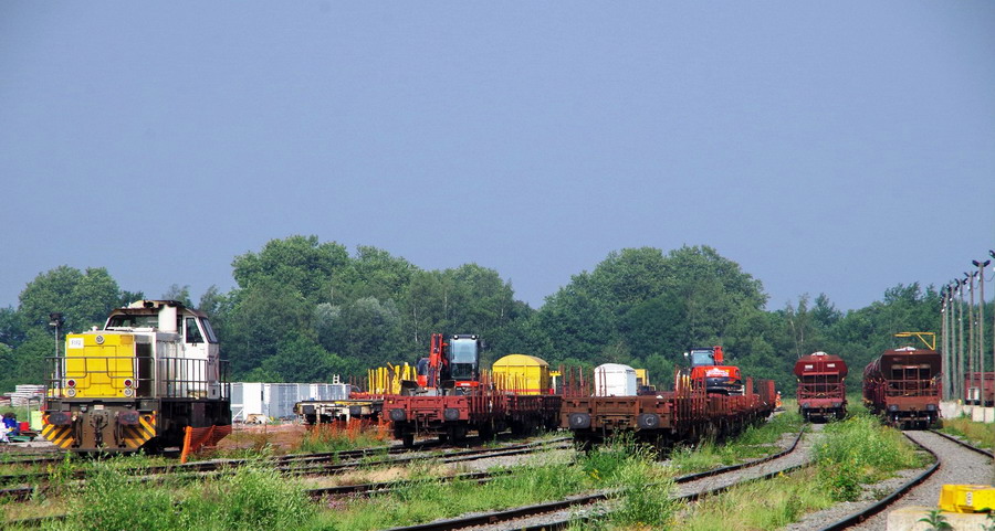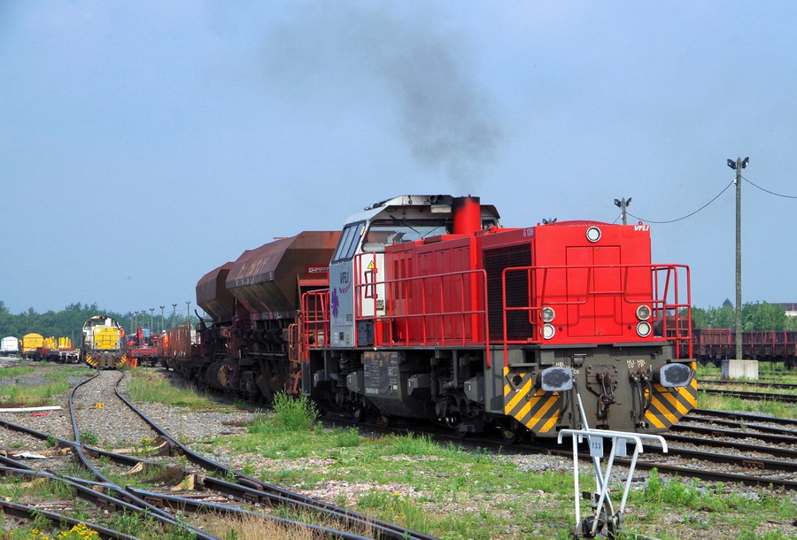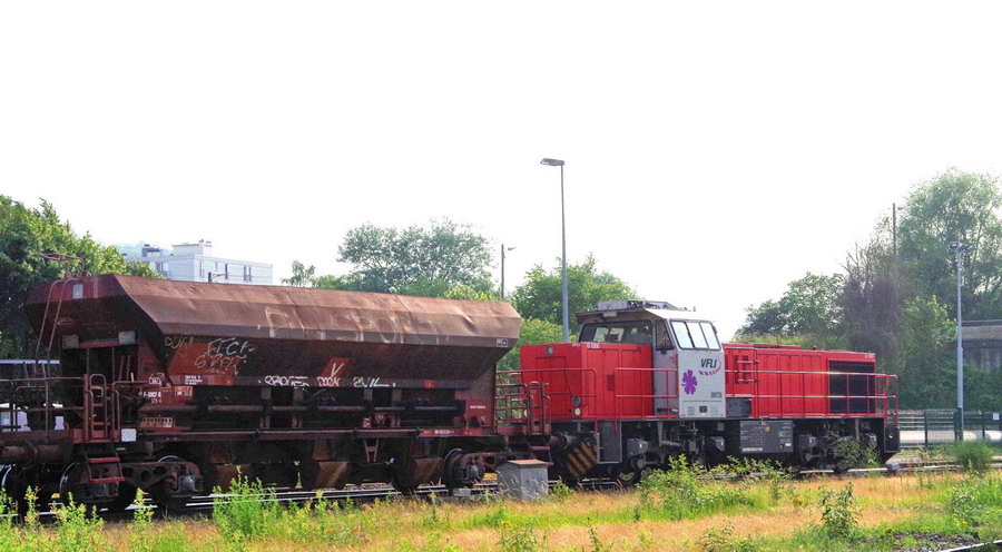la Euro 4027 - 92 87 0 004 027-4 F-VFLI en queue du train n°T1T2 sur la base de travaux de la gare de Laon le 08-06-2018