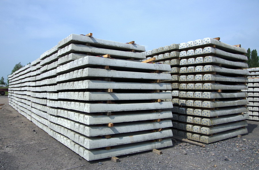 le stock de traverses en béton mono bloc pour le RVB sur la base de travaux de la gare de Laon le 08-06-2018