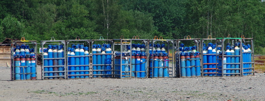les bouteilles Oxygène pour les chalumeaux coupeurs de voie en coupon de 18 m sur le RVB sur la base de travaux de la gare de Laon le 08-06-2018