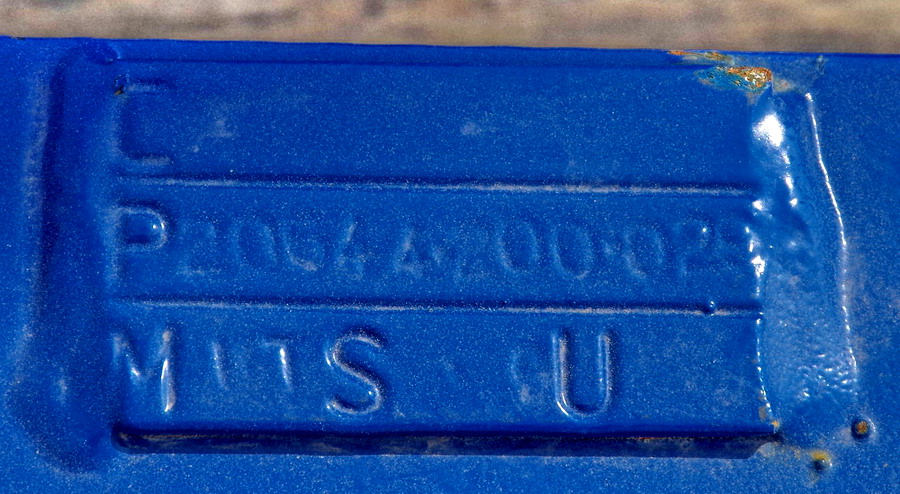 la plaque constructeur du godets rose sur la base de travaux de la gare de Laon le 08-06-2018