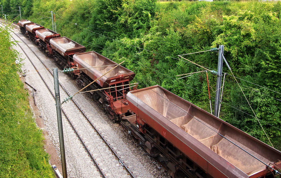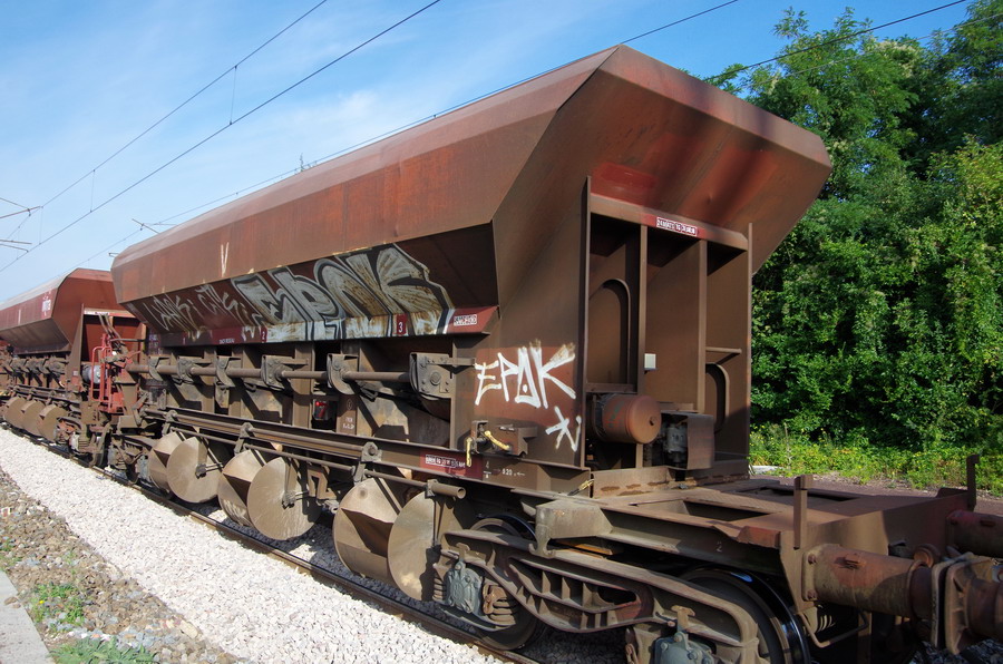 nous sommes maintenant au PK 33 avec le passage de la Dégarnisseuse C75 GCF Roma et la rame de Trémies pour le ballast