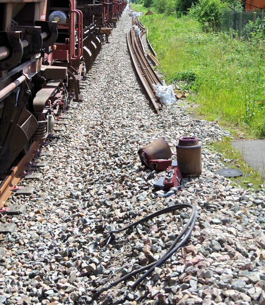 les coupons de rail de 18 m de l'ancienne voie en gare de Marcelcave (80) PK 21,100 le 15-06-2018