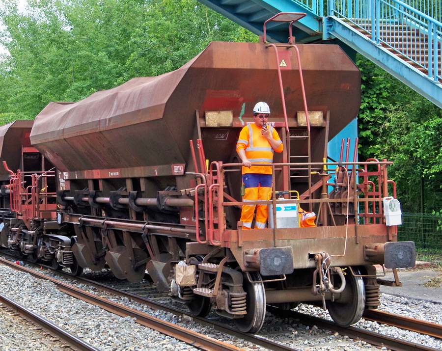 - la BB 75061 sur le train n°K3K4 etune rame de Trémies D12 en gare de Chaulnes le 15-06-2018