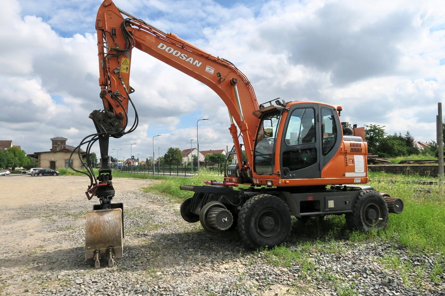 la Pelle Rail route DOOSAN DX 160 W Rail Way n°DWBEUR06H800555102 de 2009 de Delcourt Ferroviaire parc n°4 gare de Barr le 25-06-2018