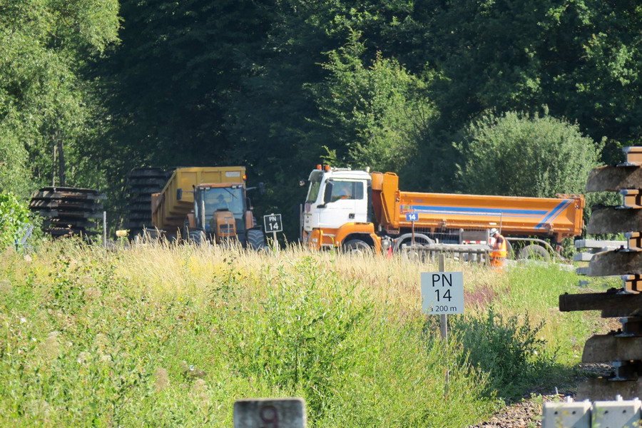 les camions pour Levieux ballast au niveau du PN n°14 Dambach-la-Ville le 28-06-2018