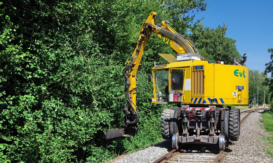 Sèry-lès-Mézières avec la présence de deux Pelles Rail route débrousailleuse le 09 juillet 2018