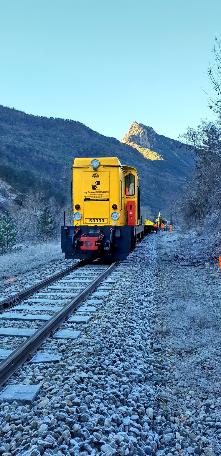 La ligne ferroviaire à voie métrique de la Trente Malè étant présente dans le même secteur, l’entreprise a eu l’occasion de s’équiper pour opérer également sur ce type d’écartement, en effectuant, en présence de l’exploitation ferroviaire, le renouvellement presque total de la ligne (environ 45 km), y compris les chaussées de gare et en réalisant, en collaboration avec des entreprises de construction générale, d’importants travaux de prolongement (environ 15 km) de la ligne ou des variantes de traçés pour enfouissement.