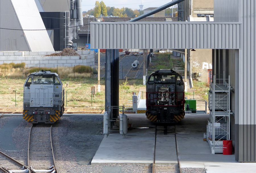 et avec la présence de deux machines Vossloh une sous le hall (G 1206 BB 1001378) et l'autre (G 1000 ECR) sur une des voies