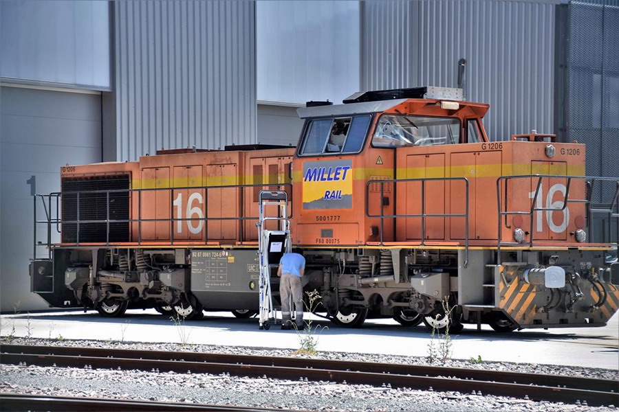 logos Millet Rail sur la Vossloh G 1206 BB 5001777 - 92 87 0 061 724-6 propriétaire maintenant de Millet Rail