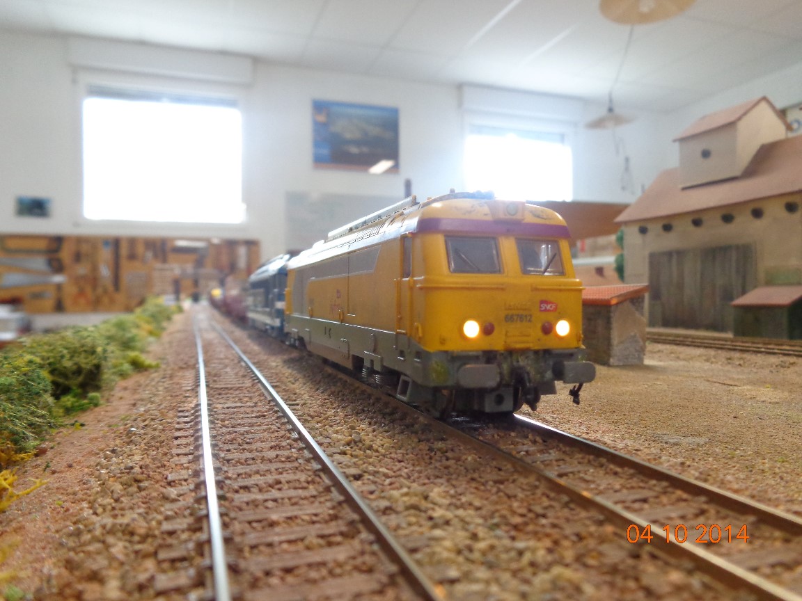 Bonsoir à tous, voici quelques photos d'un train de travaux avec la BB 667612 et 567409 (la 67409 réelle est utilisée par l'Infra), réaliser au Model Club Ferroviaire Rochelais.