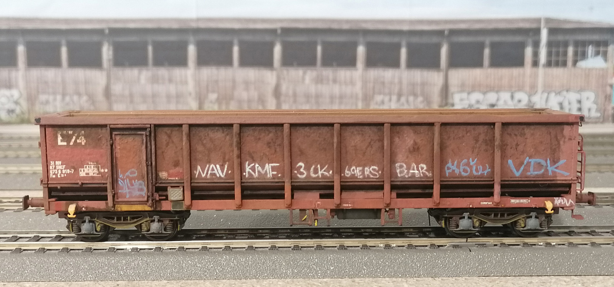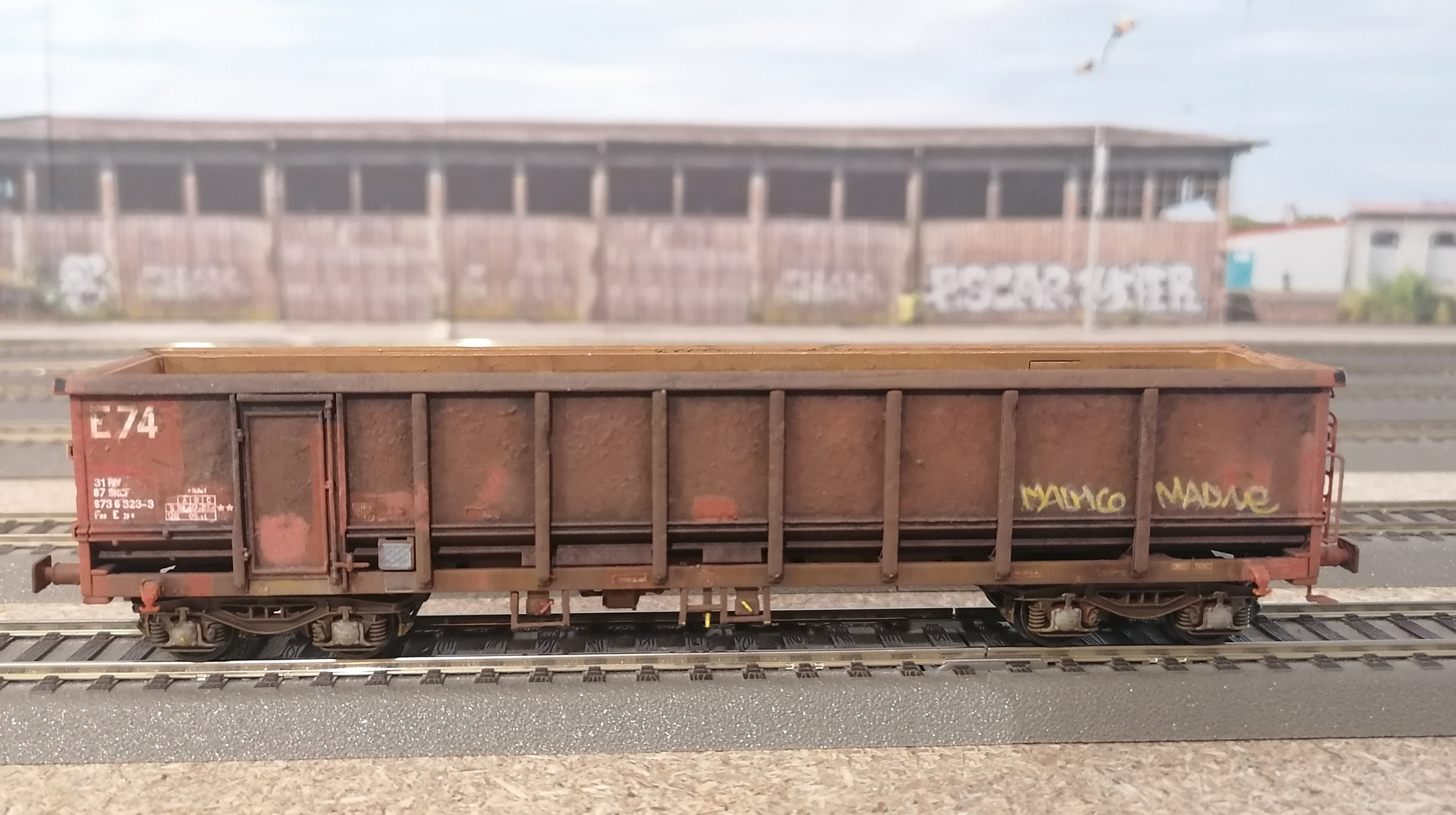 Patine d'un wagon tombereau E74 REE/Sud Express