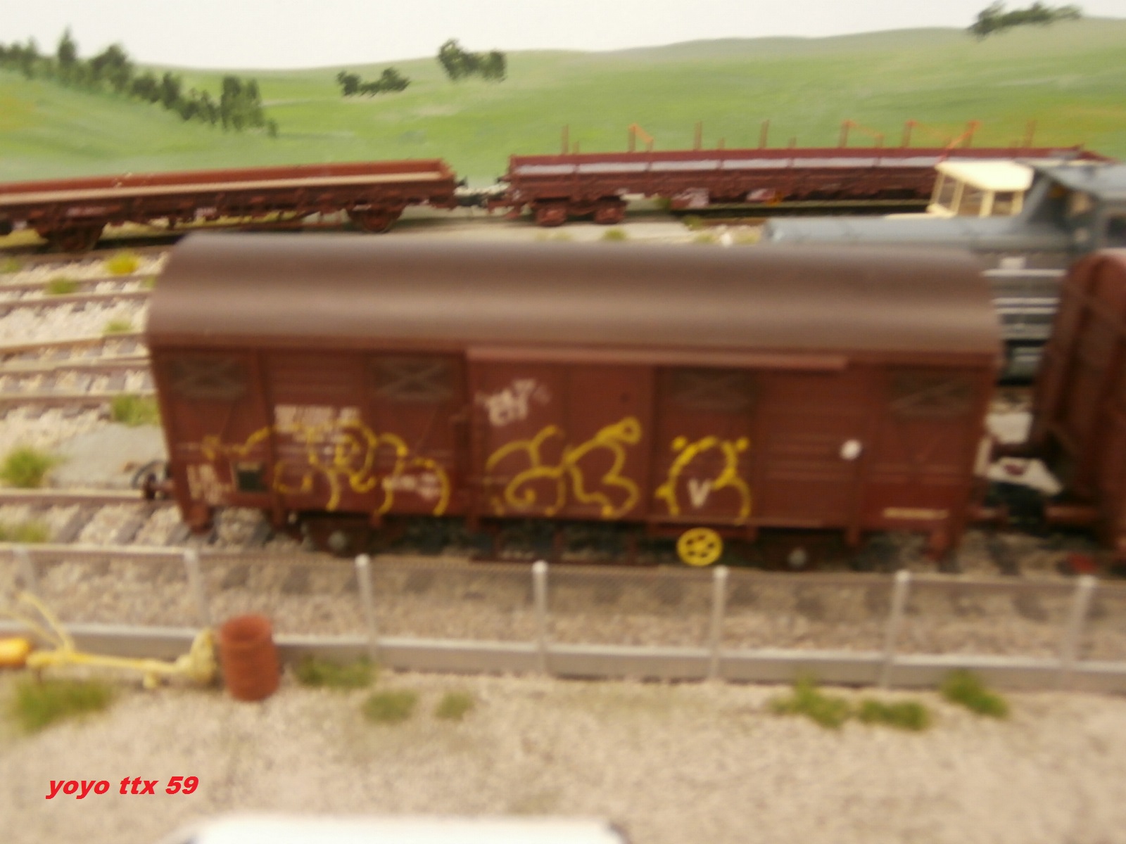 Ce train parc a trouver refuge sur deux voies du CREM , il est destiner a l'entretien des engins moteur présents eux aussi sur le CREM avant leurs départ sur un chantier tout proche