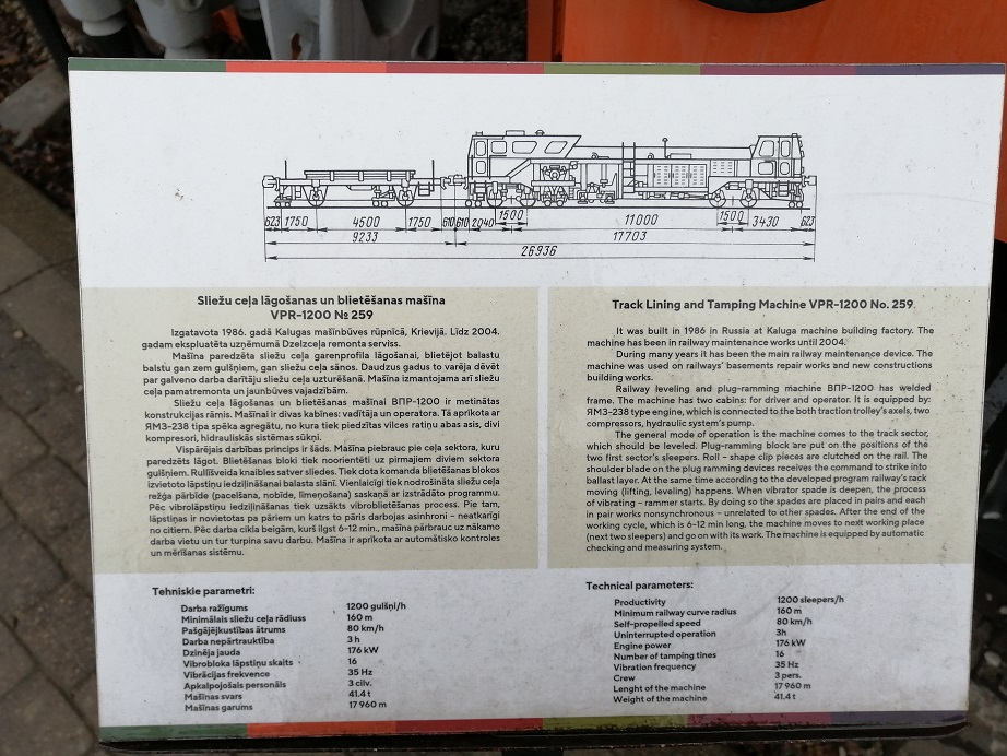 De passage à Riga, en Lettonie, j'ai visité le musée des chemins de fer. Il y a à l’extérieur une bourreuse, du type 07-32 à l'écartement 1520 mm. La légende explique qu'elle a été fabriqué en Russie en 1986, mais je suppose sur licence Plasser. Je n'étais pas au courant que ces machines avaient été adapté à l'écartement russe et fabriqué en Russie.