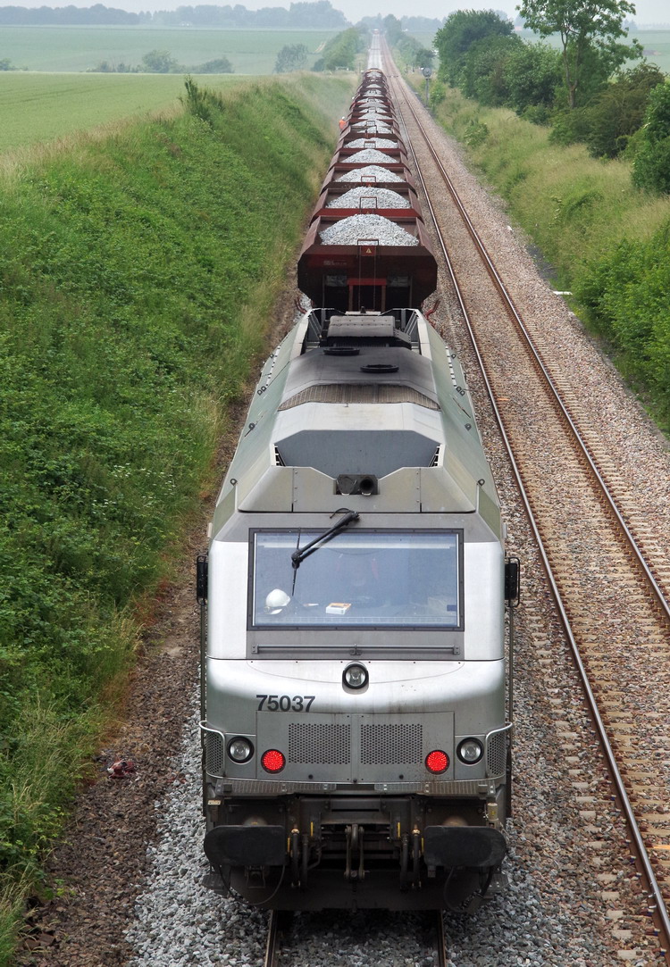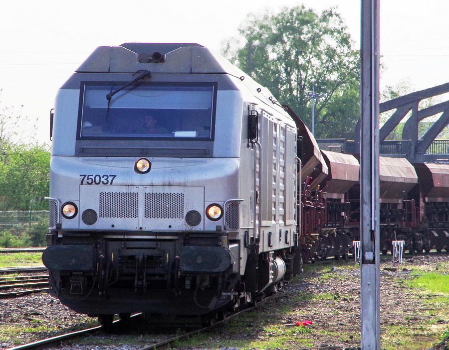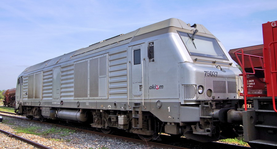La BB 75037 mise en service le 27-07-2007 pour Fret SNCF en livrée verte puis propriétaire d'AKIEM en livrée grise