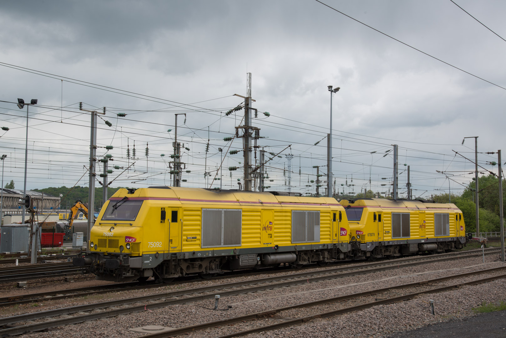 Voici la 75092 en livrée Infra (Mise en service le 16-10-2008) avec la 467472 Infra en livrée Fret pour une sortie de dépôt à 15h30
