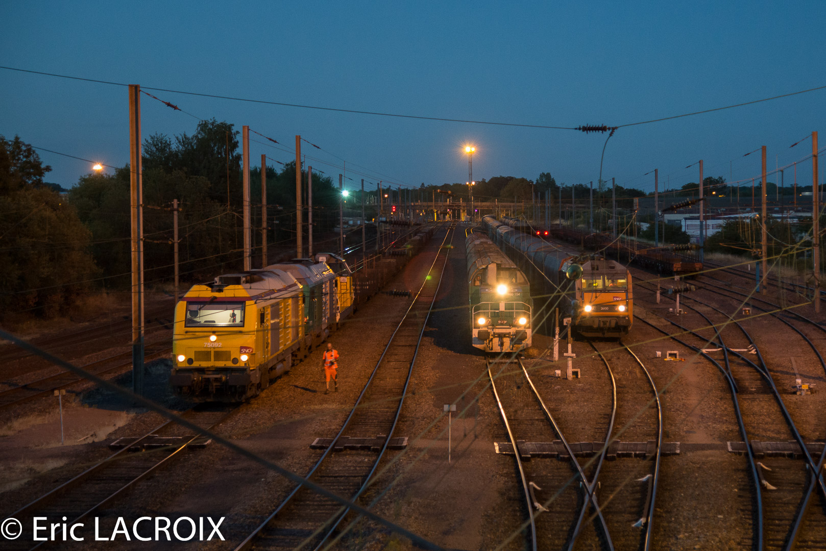 Chalindrey 22h05, le 75092 en tête d'un Infra arrive au faisceau relais le 21 juillet 2015.