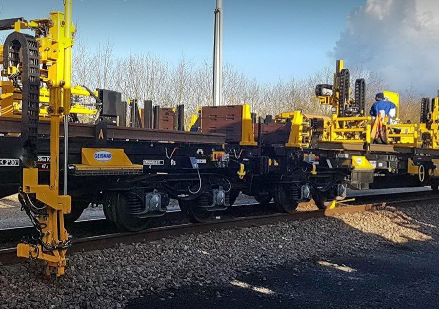 Voici un nouveau wagon de déchargement et de chargement de rails pour TSO en démonstration le 13 décembre 2017