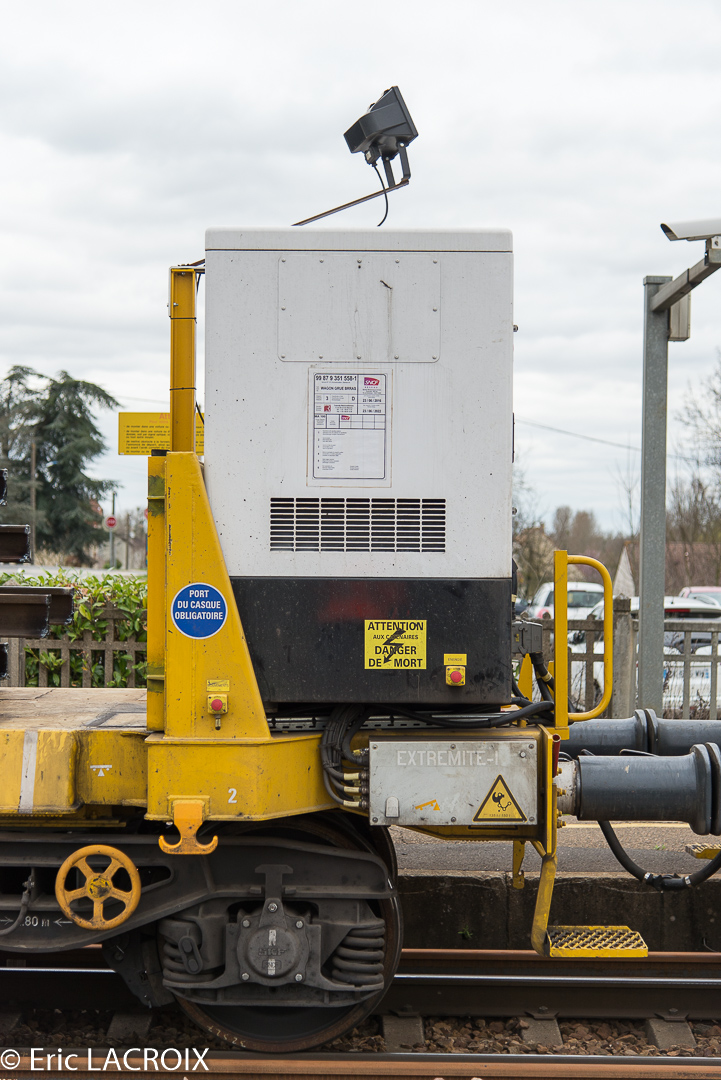 Couplage Wagon grue BRRAS 99 87 9351 558-1 et 99 87 9351 557-3 Transalp Renouvellement à Villeneuve la Guyard en mars 2017.