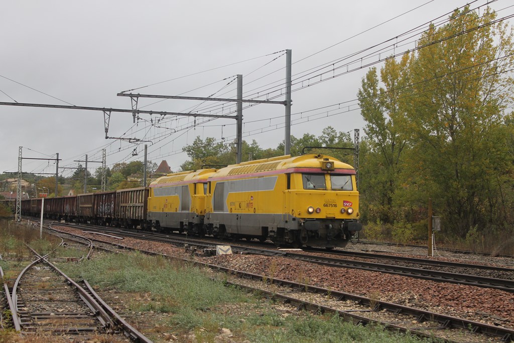 Voici une nouvelle pour le Forum la 667516 en livrée Infra (mise en service le 03-07-1972) en véhicule sur un train qui