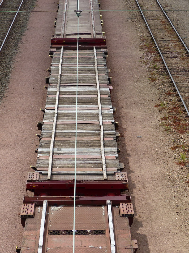 Voici le wagon plat à boggies 80 87 977 0 653-4 Uas R09 3 - F SNCF-PSL (avec le wagon 862-1)
