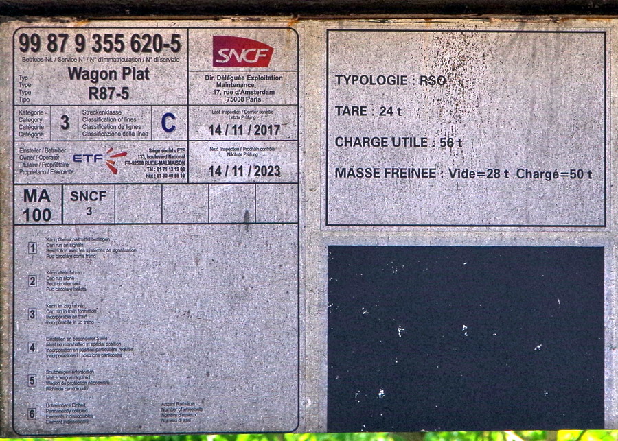 - 99 87 9 355 620-5 R87 5 PK 20,077 voie 2 à Marcelcave (80) sur le train n°MCK1 de la Coupe ETF le 04 juin 2018