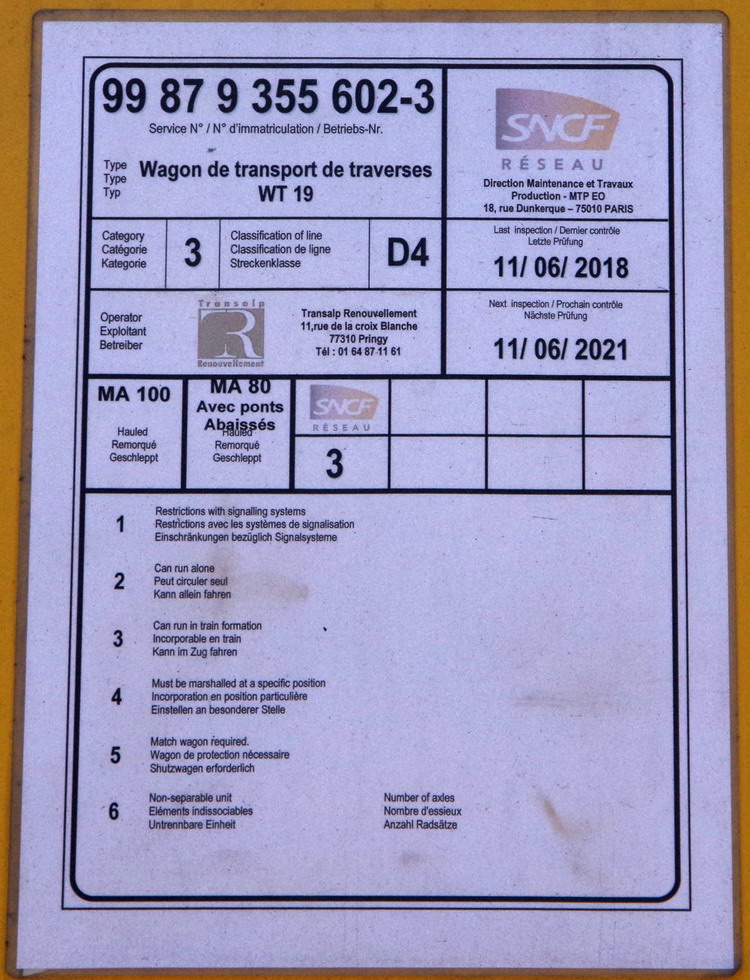 Wagon de transport de traverses 99 87 9 355 602-3 WT 19 - Transalp Renouvellement