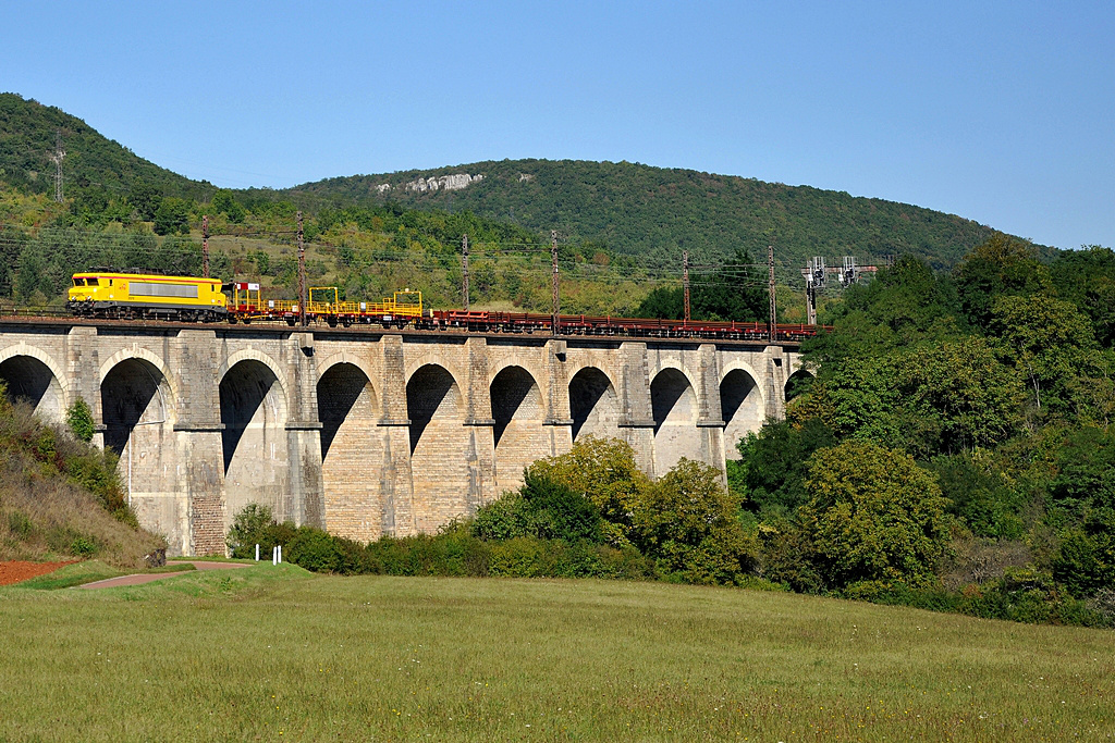 Voici la machine qui arrive de l'ouest à 15h32 sur la zone de garage des rames Infra/SNCF de SPDC le lundi 20-10-2014