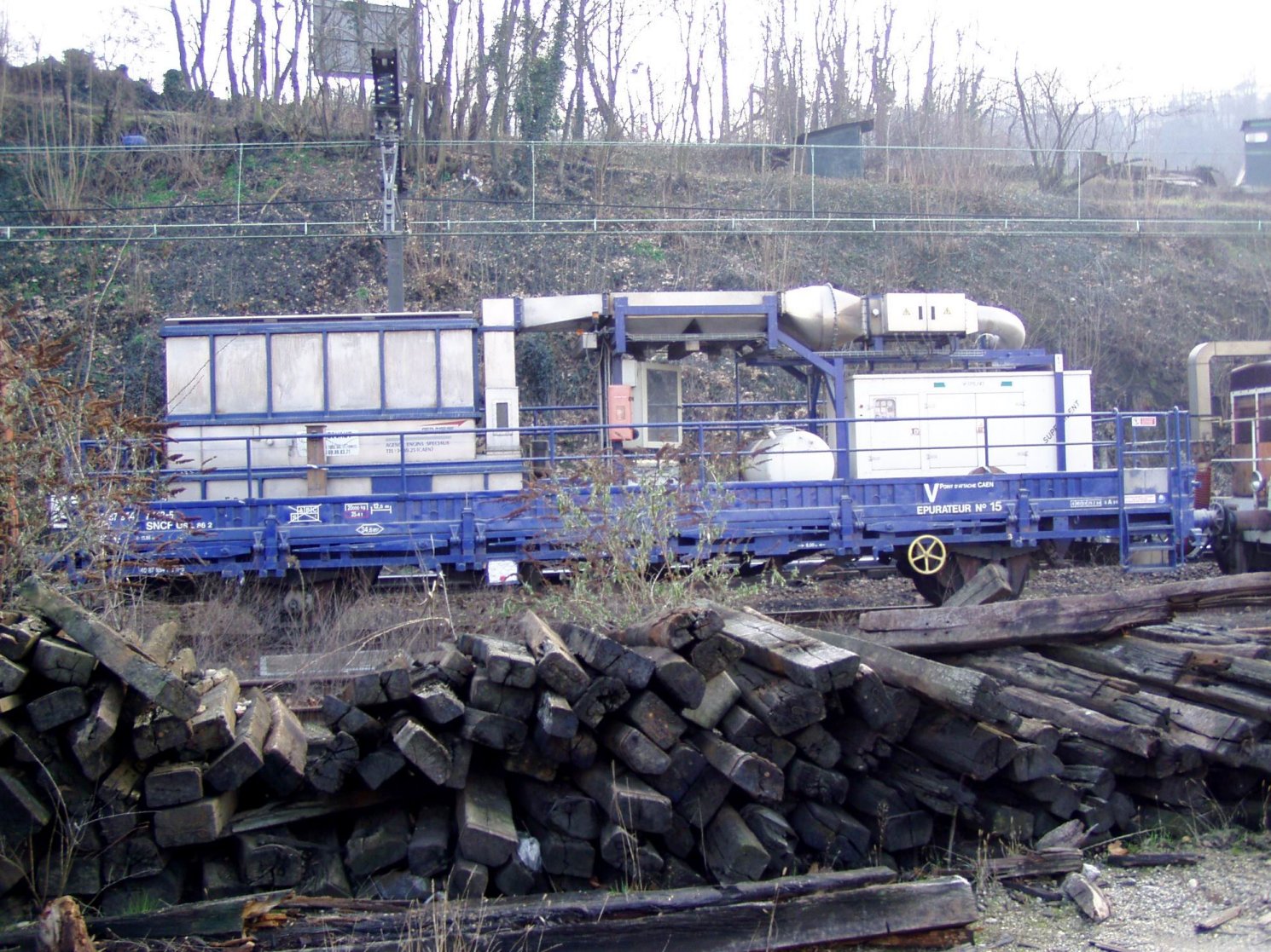Ce wagon sert a la récupération et au traitement des gaz d'échappements des engins diesel en milieux confinés .