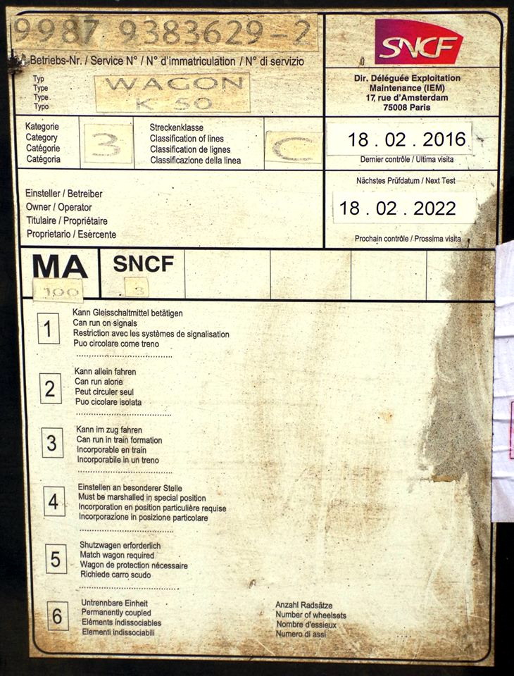 Wagon K50 - 99 87 9 383 629-2 Meccoli - Agrément de travail 18-02-2016/2022