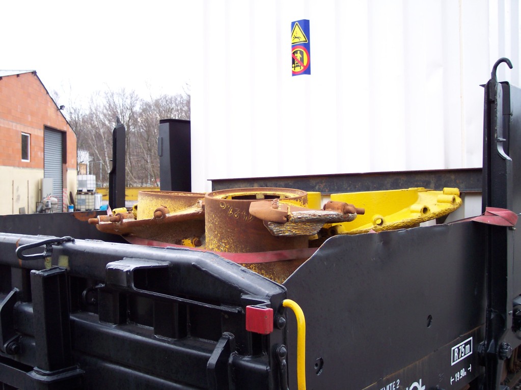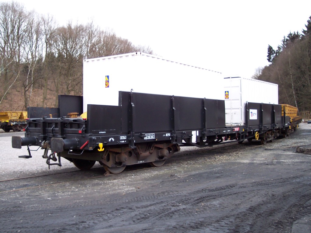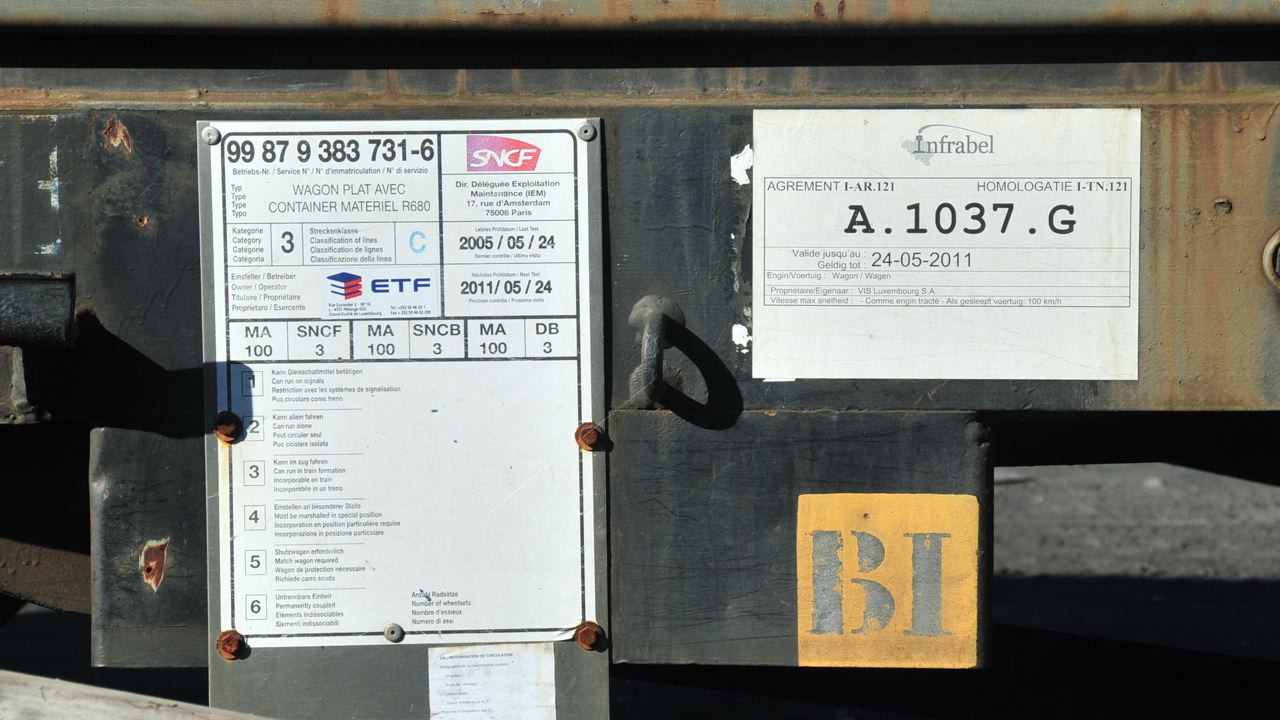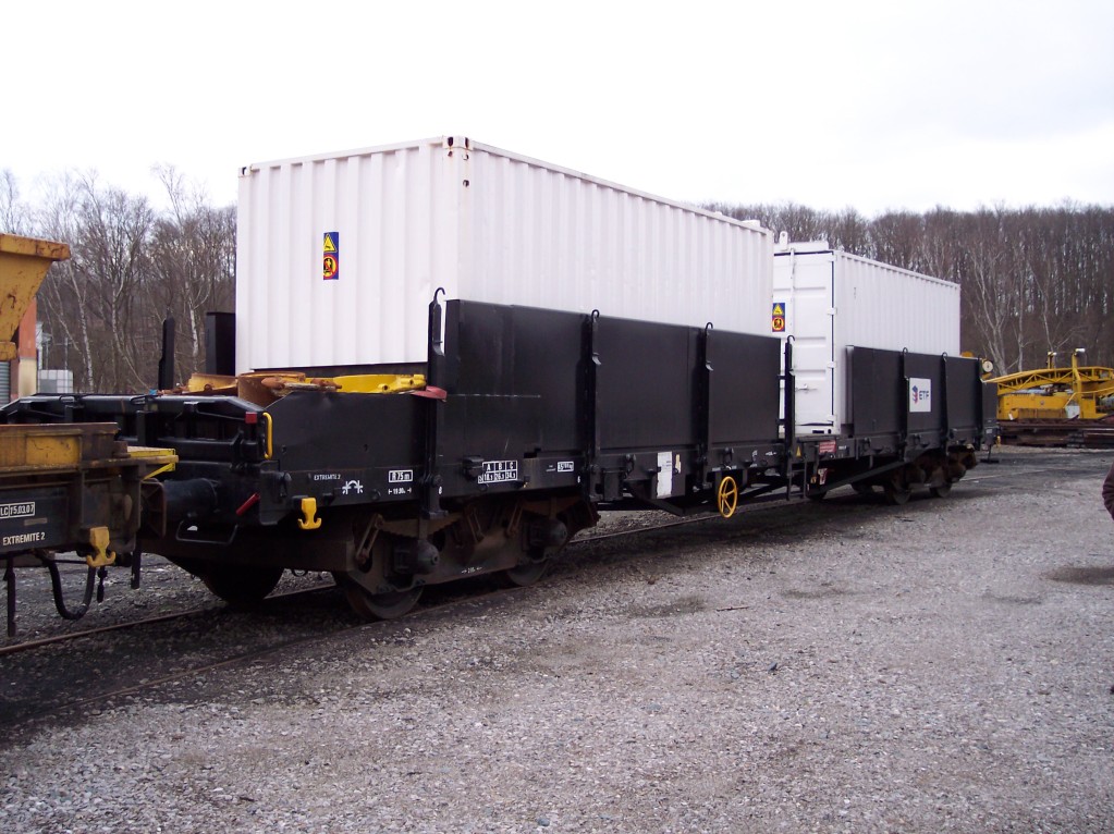 Voici une partie du nouveau Agrément du wagon plat 5680 avec container matériel pour le train PUSCAL