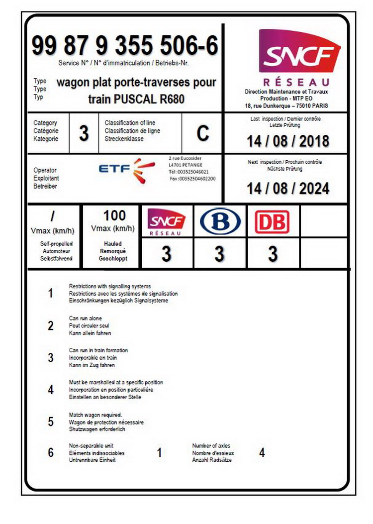 Voici le nouveau Agrément pour le wagon plat S680 porte-traverse pour le train PUSCAL